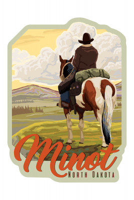 Minot, North Dakota - Cowboy & Horse - Facing Horizon - Contour - Lantern Press Artwork