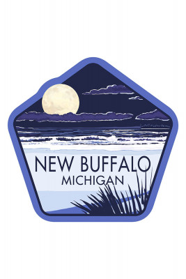 New Buffalo, Michigan - Full Moon Night Scene - Contour