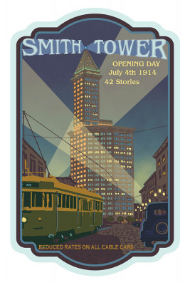 Seattle, Washington - Smith Tower - Contour - Lantern Press Artwork