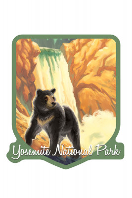 Yosemite National Park, California - Black Bear - Falls - Oil Painting - Contour - Lantern Press Artwork