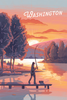 Washington - This is Living - Fishing with Hills - Lantern Press Artwork