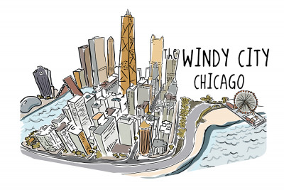 The Windy City - Chicago, Illinois - Cityscape - Line Drawing - Contour - Lantern Press Artwork