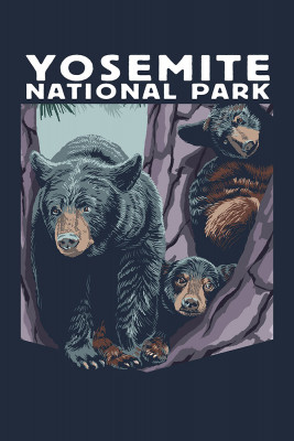 Yosemite National Park, California - Black Bears in Tree - Contour
