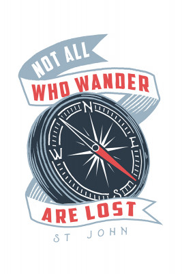 St John, Virgin Islands - Nautical Sayings Collection - Not All Who Wander Are Lost - Compass - Contour