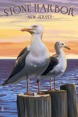 Stone Harbor, New Jersey - Seagulls on Pier