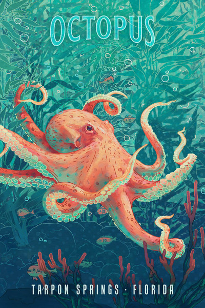 Tarpon Springs, Florida - Fluid Linework - Octopus