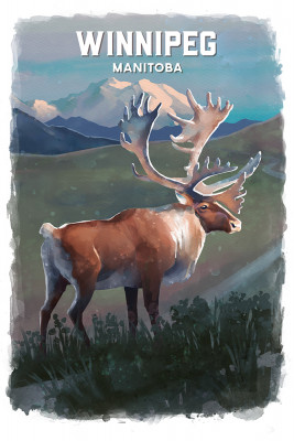 Winnipeg, Manitoba - Watercolor Study - Caribou with Mountain
