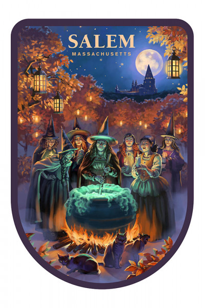 Salem, Massachusetts - Oil Painting - Witch's Gathering - Contour