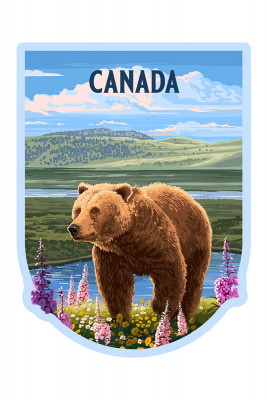 Canada - Painterly - Grizzly Bear in Meadow - Contour