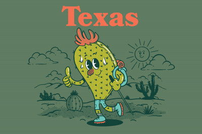 Texas - Vintage Mascot - Hiking Prickly Pear