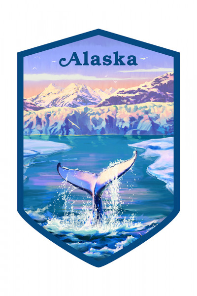 Alaska - Whale Tail with Glacier - Oil Painting - Contour