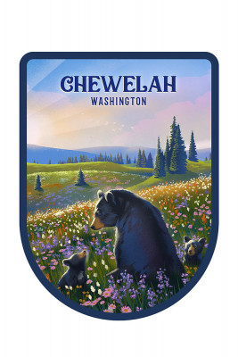 Chewelah, Washington - Lithograph - Bear Family in Field - Contour