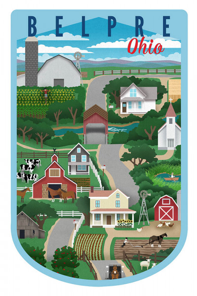 Belpre, Ohio - Retro Countryside - Blue & Red Text - Contour
