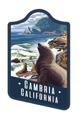 Cambria, California - Painterly - Sea Lions on Coast - Contour