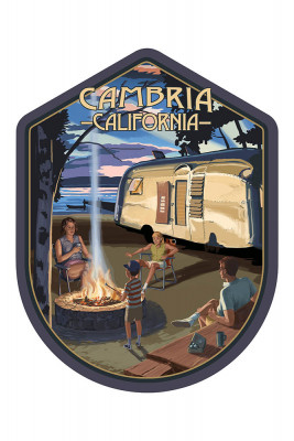 Cambria, California - Painterly - Retro Camper & Lake - Contour