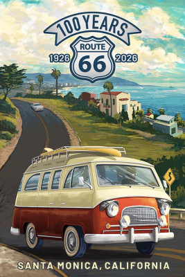 Santa Monica, California - Painterly - Camper Van - Route 66 - 100 Years