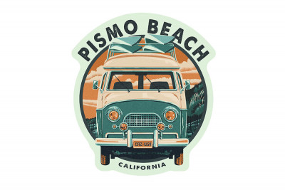 Pismo Beach, California - Letterpress - Camper Van - Contour