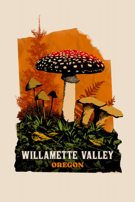 Willamette Valley, Oregon - Retro Print Collage - Mushrooms