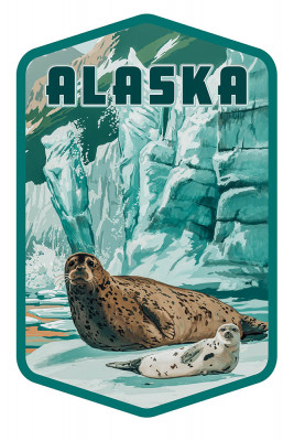 Alaska - Painterly - Harbor Seal with Pup - Contour