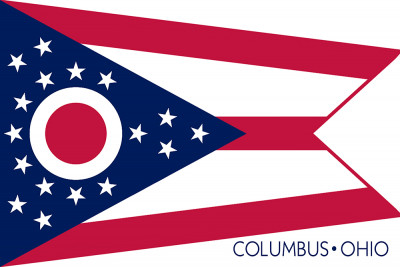 Columbus, Ohio - Ohio State Flag - Letterpress (white background)