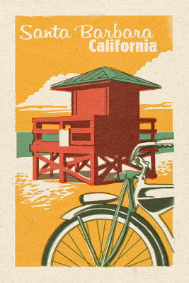 Santa Barbara, California - Woodblock - Lifeguard