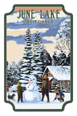 June Lake, California - Painterly - Snowman Scene - Contour