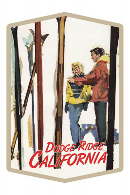 Dodge Ridge, California - Couple by Skis in the Snow - Contour