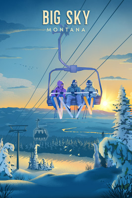 Bozeman, Montana - Lithograph - Big Sky Country - Chairlift