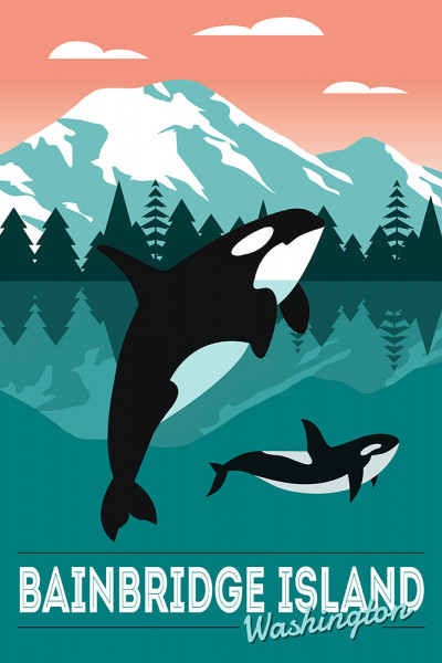 Bainbridge Island, Washington - Orca Whale and Calf - Vector