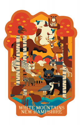 White Mountains, New Hampshire - Geometric - Woodland Forest Animals - Fall - Contour