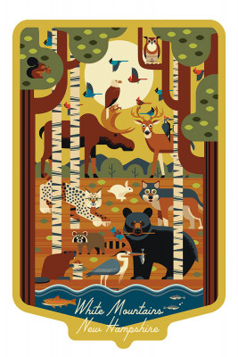 White Mountains, New Hampshire - Geometric - Forest Animals - Contour
