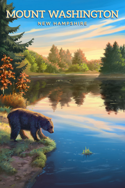 Mount Washington, New Hampshire - Oil Painting - Bear By Lake At Sunrise