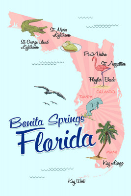Bonita Springs, Florida - Typography & Icons - Pink & Blue
