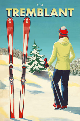 Tremblant, Quebec - Painterly - Woman Skier Mountain View
