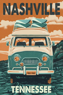 Nashville, Tennessee - Letterpress - Camper Van