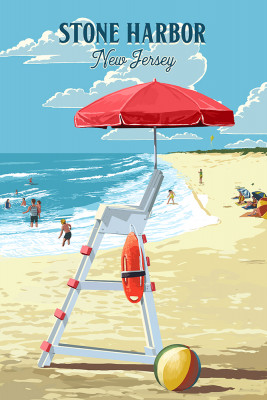 Stone Harbor, New Jersey - Painterly - Lifeguard Stand
