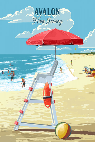 Avalon, New Jersey - Painterly - Lifeguard Stand