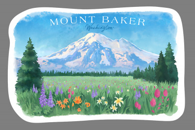 Mount Baker, Washington - Watercolor Study - Botanical Baker - Contour