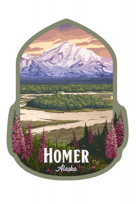 Homer, Alaska - Painterly - Mountain and Fireweeds - Contour