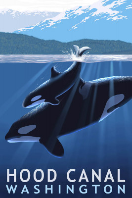 Hood Canal, Washington - Painterly - Orca & Calf