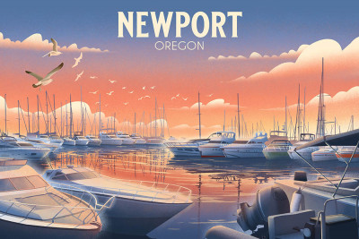 Newport, Oregon - Lithograph - Coastal Series - Home Sweet Harbor - Boats in Marina