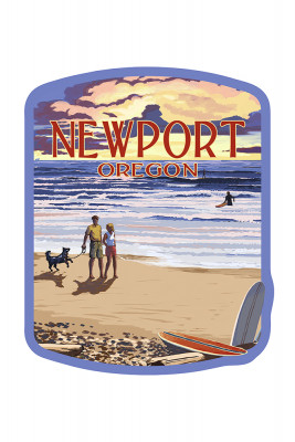 Newport, Oregon - Painterly - Sunset & Beach Scene - Contour