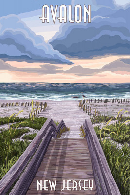Avalon, New Jersey - Beach Boardwalk Scene