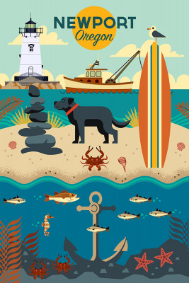 Newport, Oregon - Geometric - Beach and Lighthouse