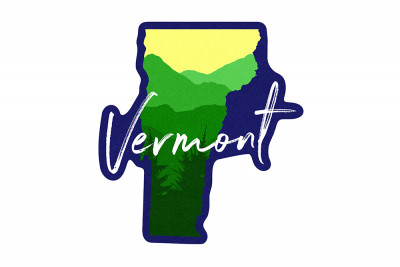 Vermont - State Silhouette & Mountains - Blue on Green Forest - Contour