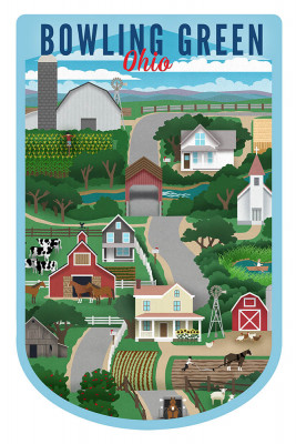 Bowling Green, Ohio - Retro Countryside - Blue & Red Text - Contour