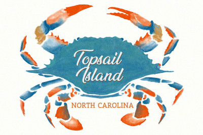 Topsail Island, North Carolina - Blue Crab - Watercolor
