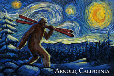 Arnold, California - Starry Night - Winter Bigfoot with Skis