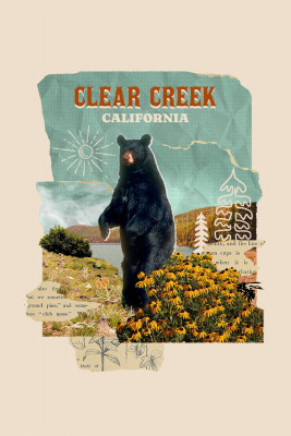 Clear Creek, California - Retro Collage - Black Bear