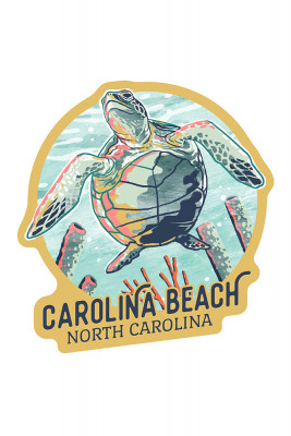 Carolina Beach, North Carolina - Graphic Pastel - Sea Turtle - Contour